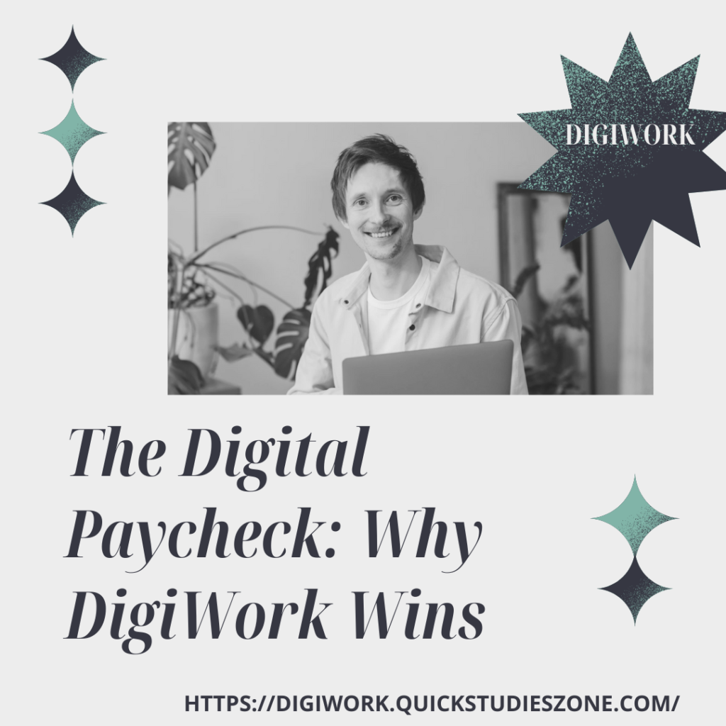 The digital paycheck symbolizes more than online income. The Digital Paycheck: Why DigiWork Wins. It stands for flexibility, freedom, and the ability to control one’s professional life. DigiWork is changing the way income is made by giving power back to the individual, allowing skill and creativity to determine income value as opposed to place and position.